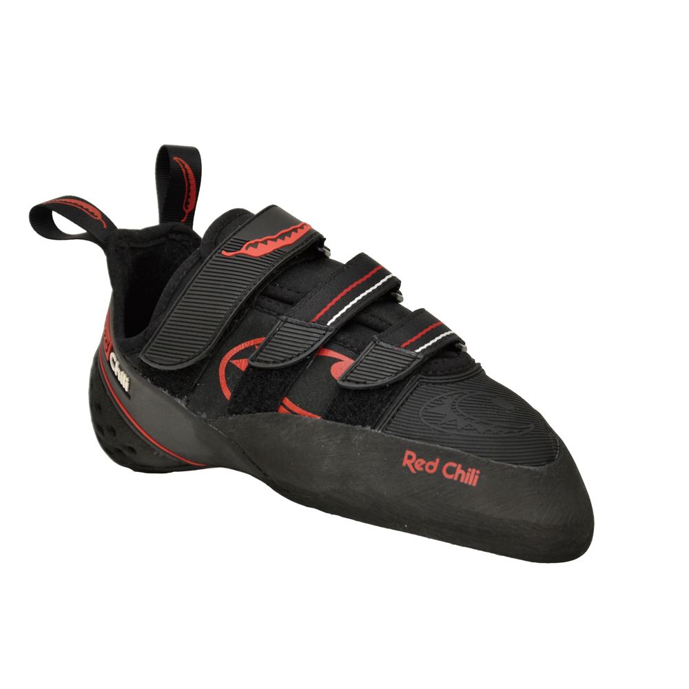 ダウントウ形状をもち、前傾壁で真価を発揮するモデル。つま先には高いフッキング性能を発揮する大型パッチを装備。つま先側2本のベルクロの表地にはナイロンのウェビングテープを採用し耐久性を高めています。インソールは汗による滑りを防ぐ本革仕様。