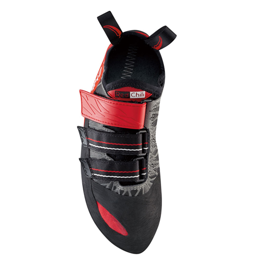 2ピースに分かれたアウトソールと一体成形ヒールカップラバーを採用することで、前傾壁のみならず張り出しなど多彩な形状を持つ壁でのフットワークに対応したハイエンドモデル。ストレッチ素材のクリマプレン®インナーソックは足の甲を面で捉えてフィット感を高めます。