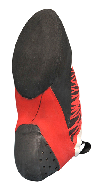 2ピースに分かれたアウトソール。前傾壁のみならず張り出しなど多彩な形状を持つ壁でのフットワークに対応可能。