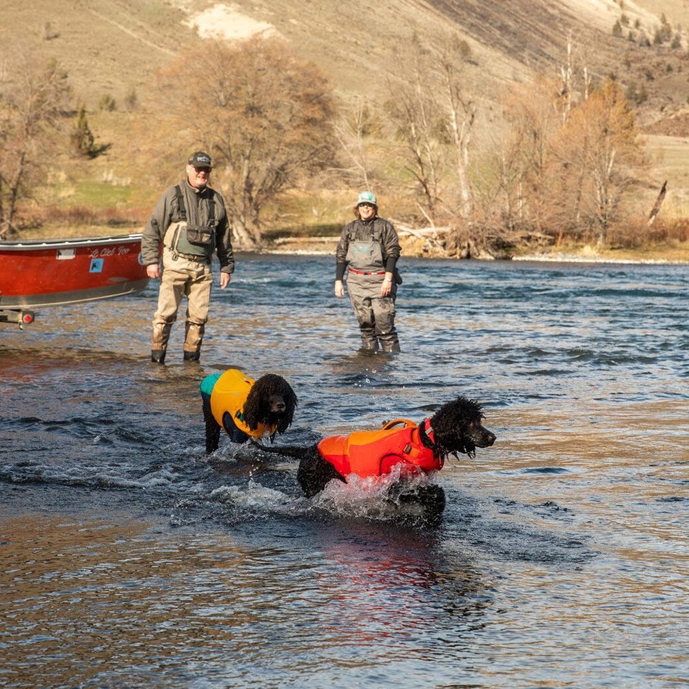 明るいカラーリングで水中での視認性も高い犬用ライフジャケット。2層構造の柔らかなフォームが抜群のフィット感と泳ぎやすさを実現しています。お腹・首回りはバックルで調整でき、ビーコンを取り付けられるループが付いています。濡れた環境でも快適に過ごせる水陸両用のジャケットアンダーコート ウォータージャケットを下に重ねて着用することもできます。