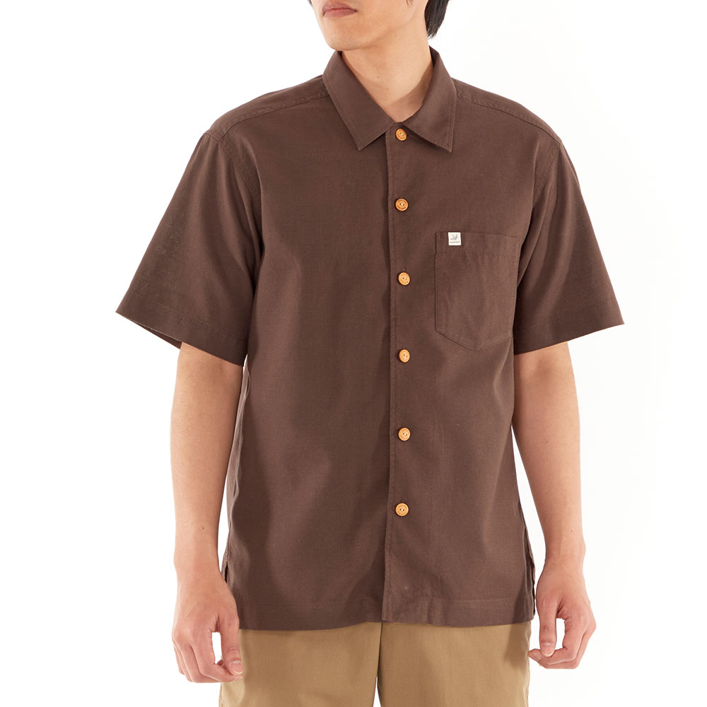 高い通気性を備えた、肌離れのよいシャツです。紙糸が持つ優れた吸放湿性に、コットンの肌触りのよさが加わり、暑い時季でも清涼感のある快適な着心地が持続。ゆったりとしたシルエットで、旅先や日常でのリラックスウエアとしてお薦めです。ナチュラルな表情で手触りもよい竹製ボタンを使用しています。