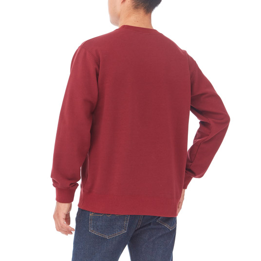 コットンにポリエステルを混紡した素材を使用したスウェット。裏地は暖かく柔らかな肌触りの起毛地で、しっくりとなじむ心地よい風合いです。洗濯後、乾きやすいのが特長です。