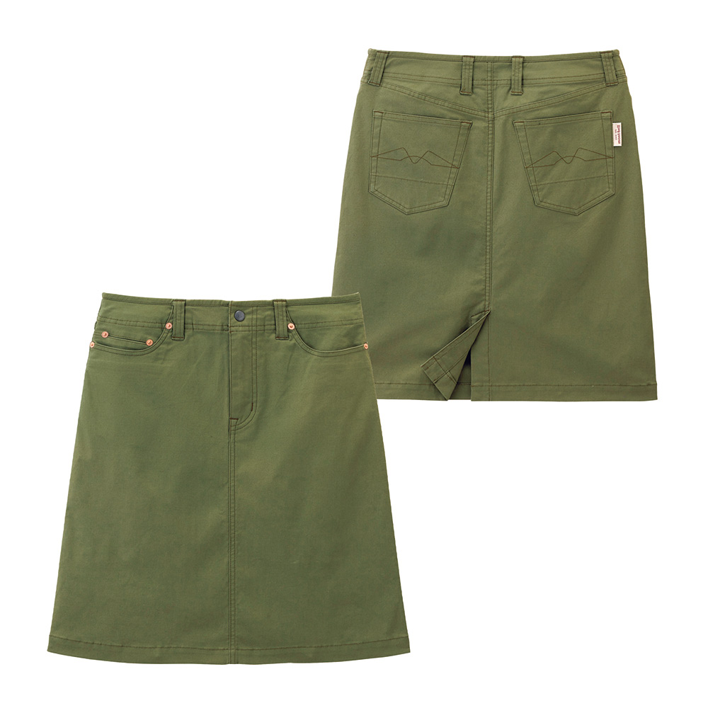 ストレッチ性を備えた生地を使用した動きやすい膝下丈のスカートです。背面にスリットを入れることで、足上げしやすくなっています。製品に洗い加工をかけた、しなやかな風合いで、旅行や日常使いに最適です。