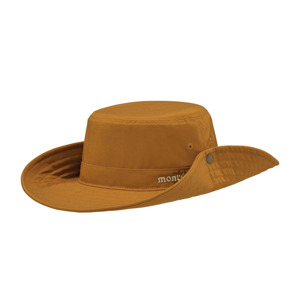 モンベルが独自に開発した難燃性素材「フレアテクト®」を使用したハットです。野外での調理やたき火などで、火の粉を受けても穴が開きにくくなっています。コットンのような自然な風合いと適度なハリを持ち、キャンプから普段使いまで幅広く着用できます。ハリのある大きめのツバなので、たき火の火を起こす「うちわ」としても使用できます。サイドをはね上げてホックで固定することも可能。※火から完全に身を守るものではありません。