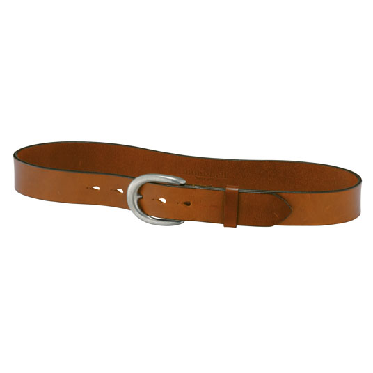 留め具と一体型のバックルにベルトの先を通すだけで、比較的簡単に装着できます。ループが多少左右に動くので、ベルトを通しやすくなっています。幅35mm。