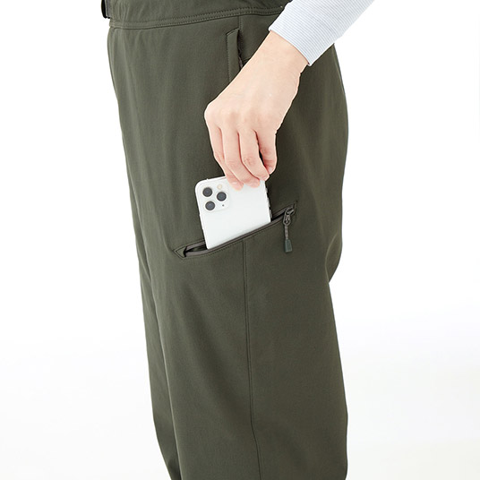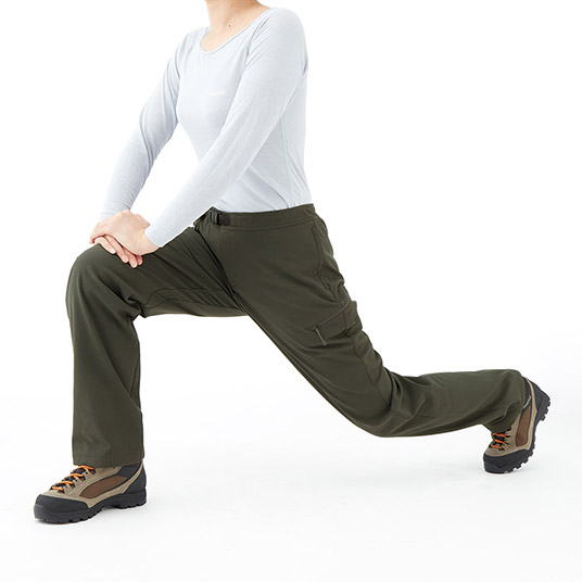 裾まわり:ストレート(裾が登山靴に被る形状で、裾から泥や小石などが入りにくい)