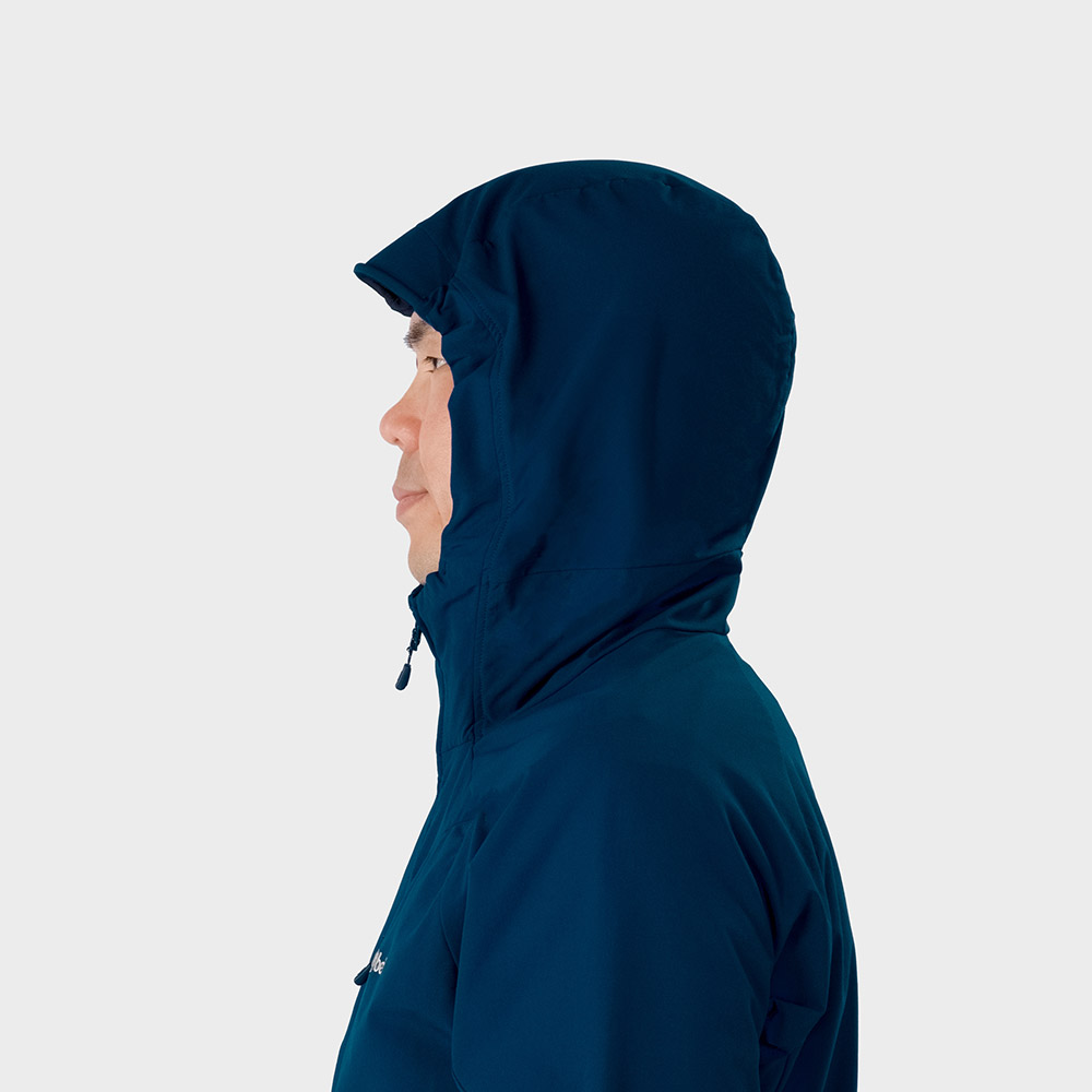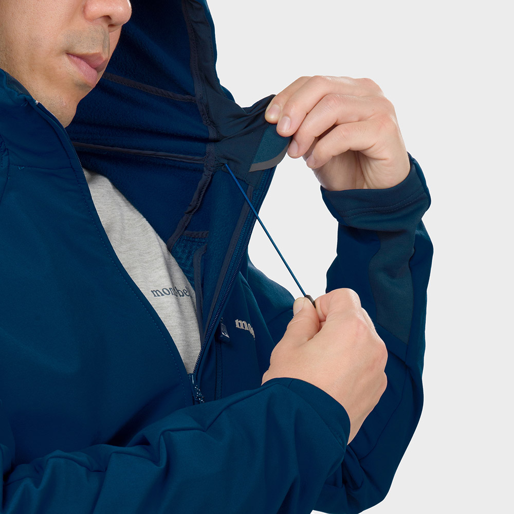 【特長】デュアルアクスルフード / 立体裁断(肘) / リードインコード・システム(裾) / ジッパーがあごに当たらない仕様 / 2WAYストレッチ