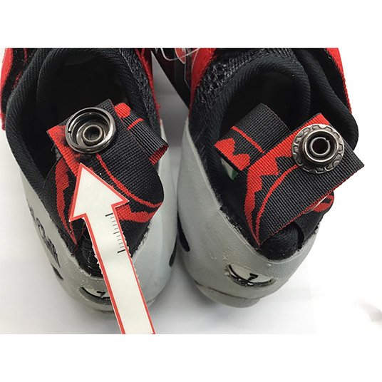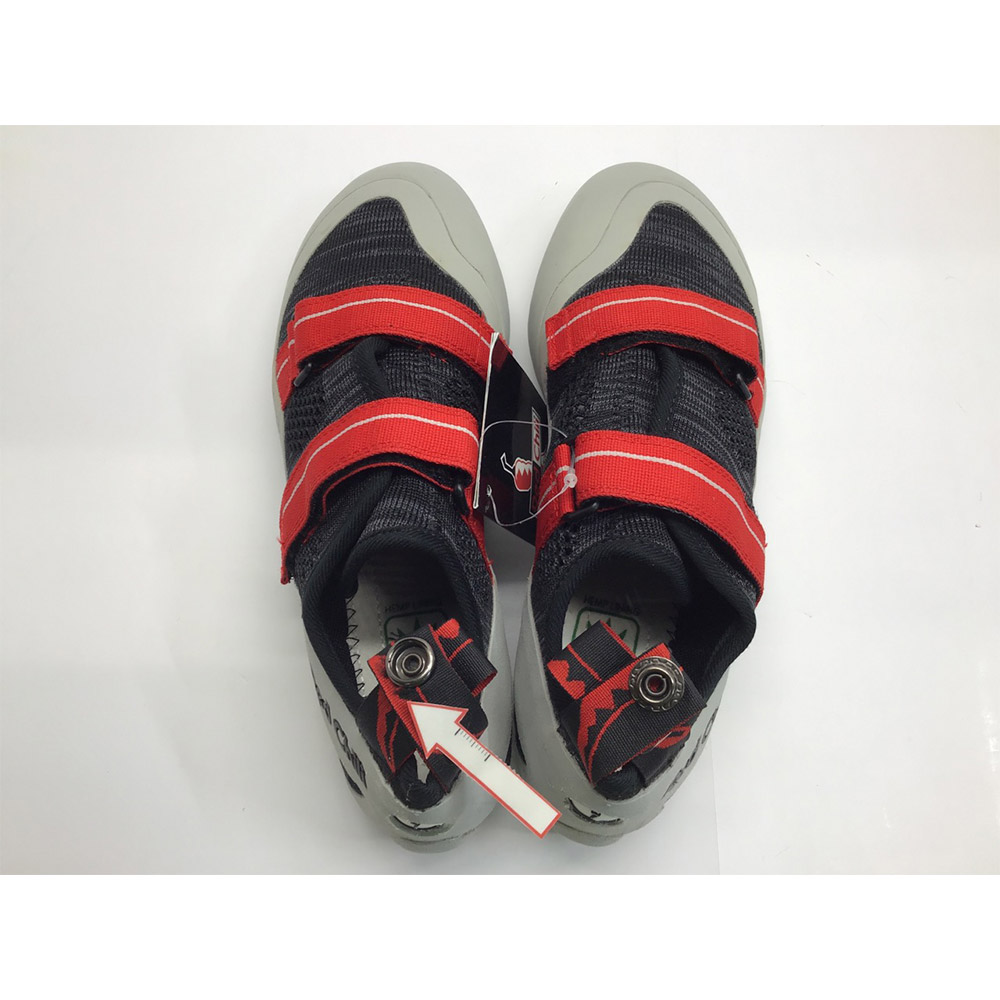 アッパーにポリエステルメッシュを使用することで、高い快適性を実現し、2本の互い締めベルクロにより確実な締め上げを可能にしています。かかとにサイズ表記があり、グレーカラーのラバーを採用することでジムの壁を汚しにくくしたレンタルシューズモデルです。