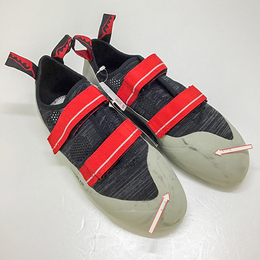 アッパーにポリエステルメッシュを使用することで、高い快適性を実現し、2本の互い締めベルクロにより確実な締め上げを可能にしています。かかとにサイズ表記があり、グレーカラーのラバーを採用することでジムの壁を汚しにくくしたレンタルシューズモデルです。