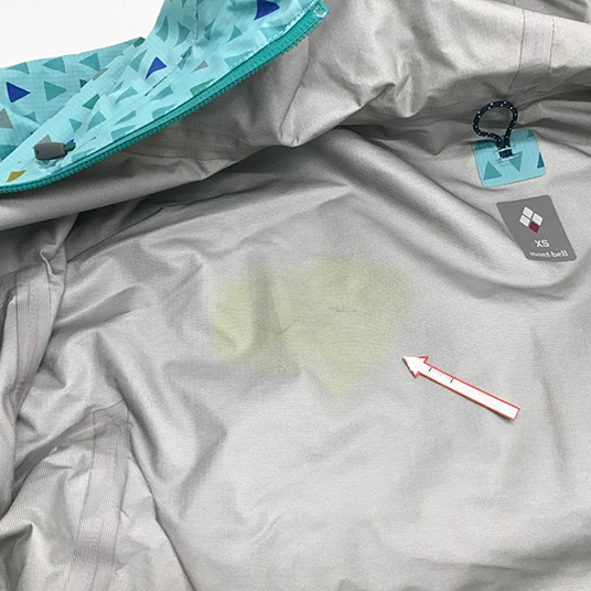 訳あり内容 後身頃裏:変色