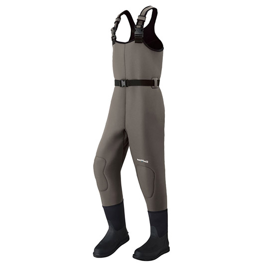 厳冬期のフィッシングに最適な、保温性の高いブーツ一体型ウエイダーです。胸の高さまで覆えるチェストハイタイプでありながら、暑い時には胸部の生地を折り込み、ショルダーベルトで留めることでウエストハイタイプとしても使用できます。ウエディングタイツを中にはけるように余裕を持ったサイズで、擦れやすい膝の補強や、水の侵入を防ぐウエストベルトなど、ウエイディングに必要な機能を備えています。