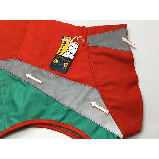 暗い場所や時間帯でも視認性を高める反射素材を備えたジャケットです。どの方向から光が当たっても目立つようになっています。はっ水性と耐摩耗性に優れた生地を使用しており、普段の散歩で活躍します。リーシュの通し口と、ビーコンを取り付けるためのループ付き。
