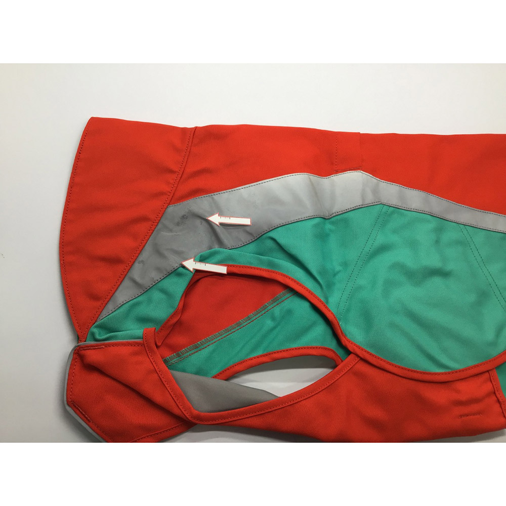 暗い場所や時間帯でも視認性を高める反射素材を備えたジャケットです。どの方向から光が当たっても目立つようになっています。はっ水性と耐摩耗性に優れた生地を使用しており、普段の散歩で活躍します。リーシュの通し口と、ビーコンを取り付けるためのループ付き。