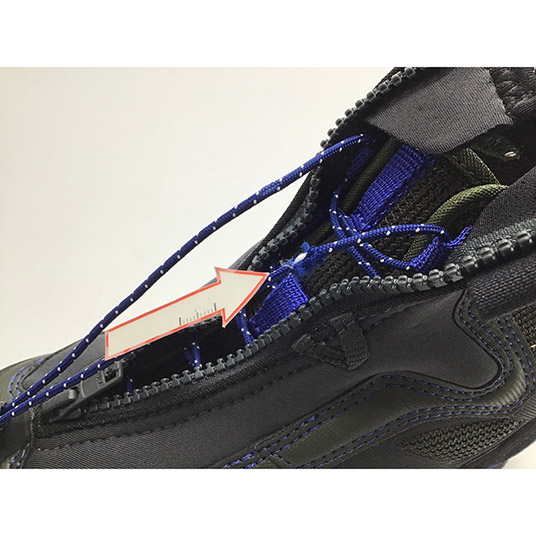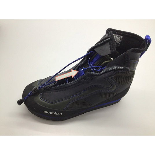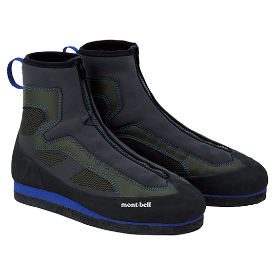 アウトソールには、コケやぬめりに強く耐久性に優れるポリプロピレン製フェルトを使用しています。靴ひもは締めやすいコードロック仕様のモデルです。足首のスパッツと一体化したレースカバーにより、余ったコードのひっかかりや損傷を軽減します。
