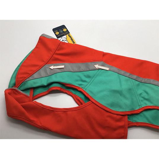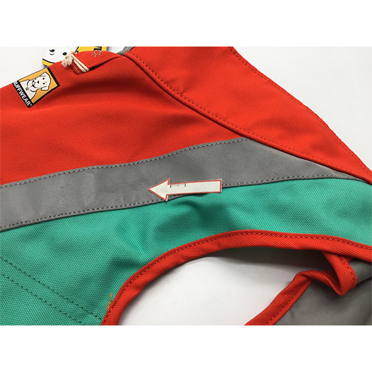 暗い場所や時間帯でも視認性を高める反射素材を備えたジャケットです。どの方向から光が当たっても目立つようになっています。はっ水性と耐摩耗性に優れた生地を使用しており、普段の散歩で活躍します。リーシュの通し口と、ビーコンを取り付けるためのループ付き。