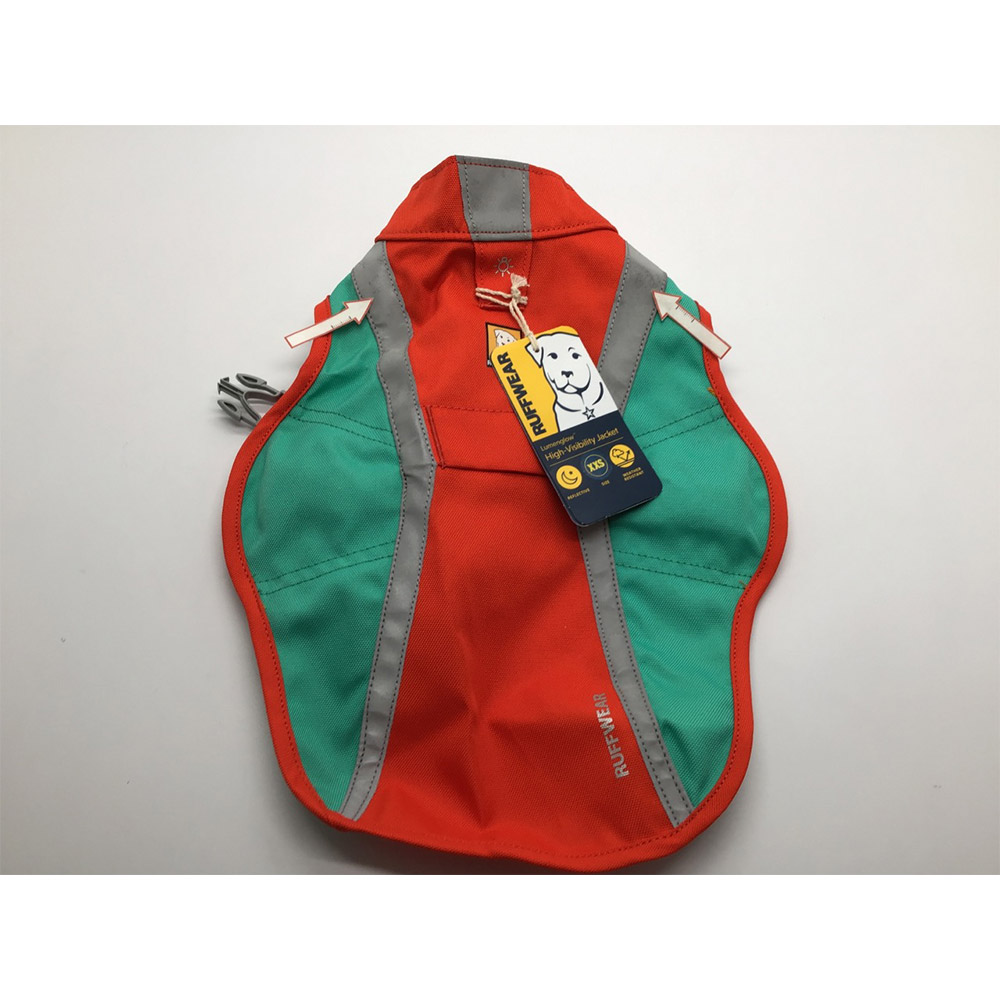 暗い場所や時間帯でも視認性を高める反射素材を備えたジャケットです。どの方向から光が当たっても目立つようになっています。はっ水性と耐摩耗性に優れた生地を使用しており、普段の散歩で活躍します。リーシュの通し口と、ビーコンを取り付けるためのループ付き。