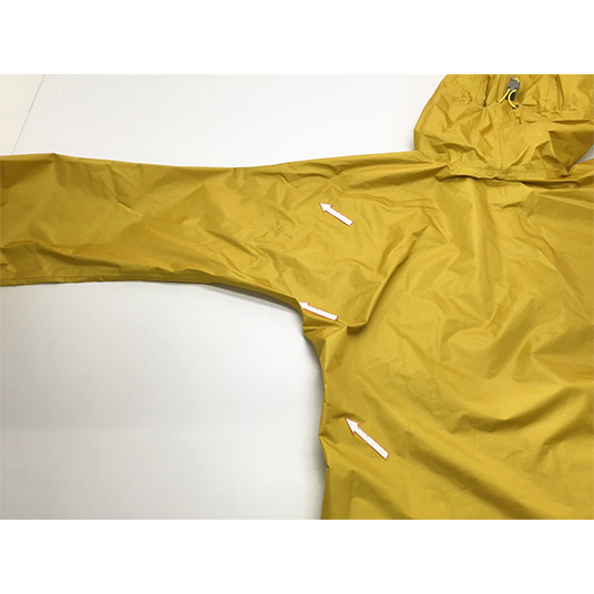 【特長】K-Mono CUT/車のライトなどを反射して光るテープ(フロントジッパー)/スマートソーイング/スタッフバッグ付き
