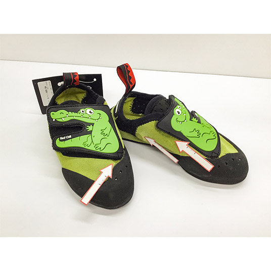 踵の部分が柔らかく可動する構造を備え、お子さまの足の成長に合わせて長い期間快適に着用することができます。ベルクロストラップには可愛らしいワニのモチーフをあしらっています。