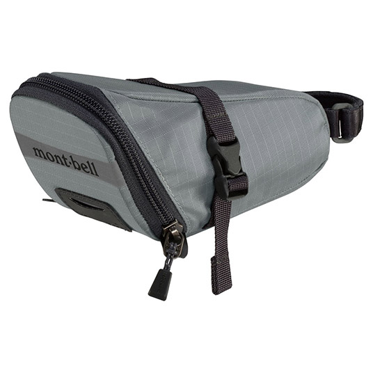 工具類などの収納に適したサドル用の軽量ポーチです。乗り降りやペダリングの妨げにならないコンパクトなフォルムでありながら、開口部が大きく開くため収納物の出し入れが容易。シートピラーにベルクロテープを巻き付け、サドルレールにバックル付きベルトを留めるだけで簡単に装着することができます。車のライトなどを反射して光るプリント、バックライトホルダー付き。