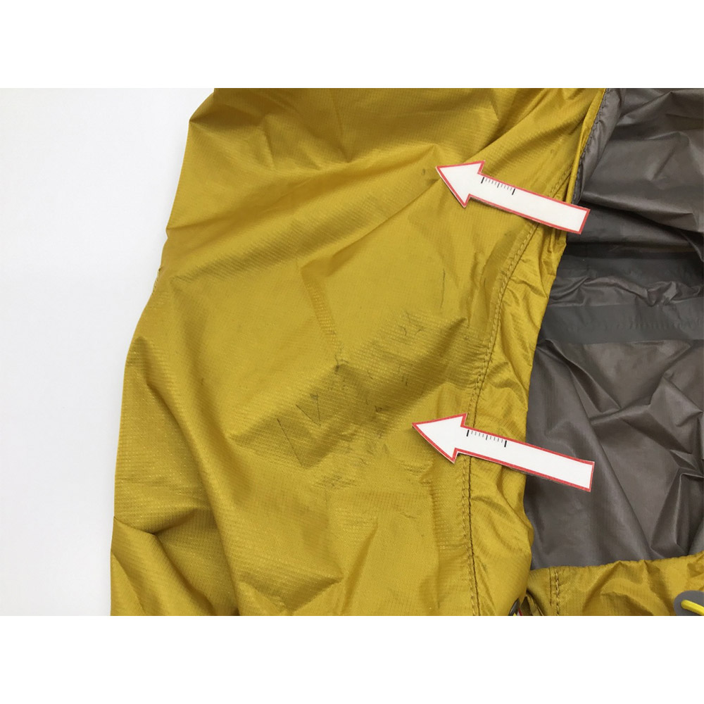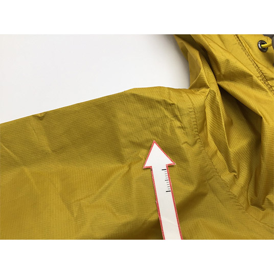モンベルでは、レインウエアに求められる耐水圧20,000mm以上をクリアした素材のみを使用しています。