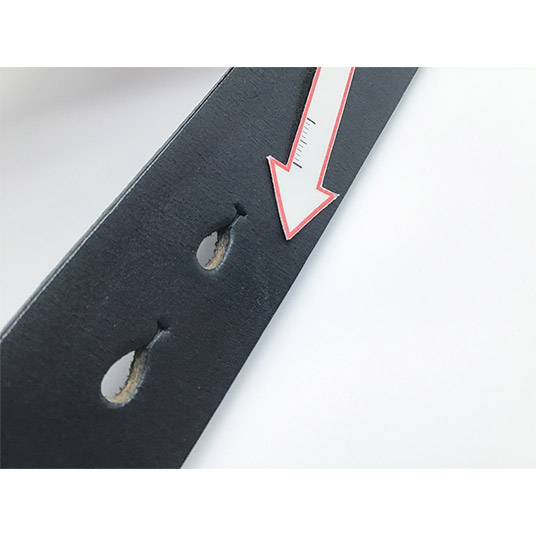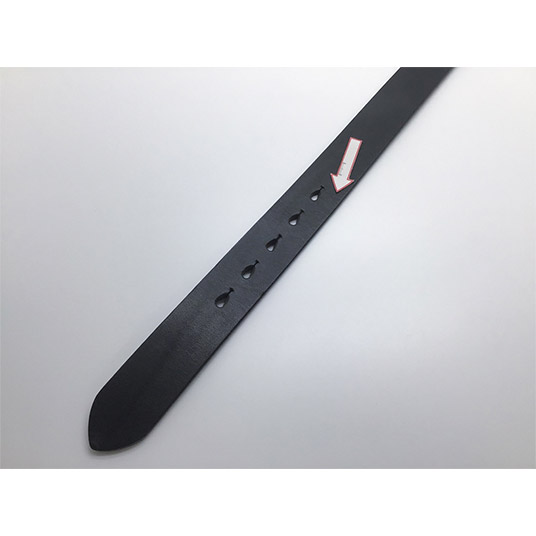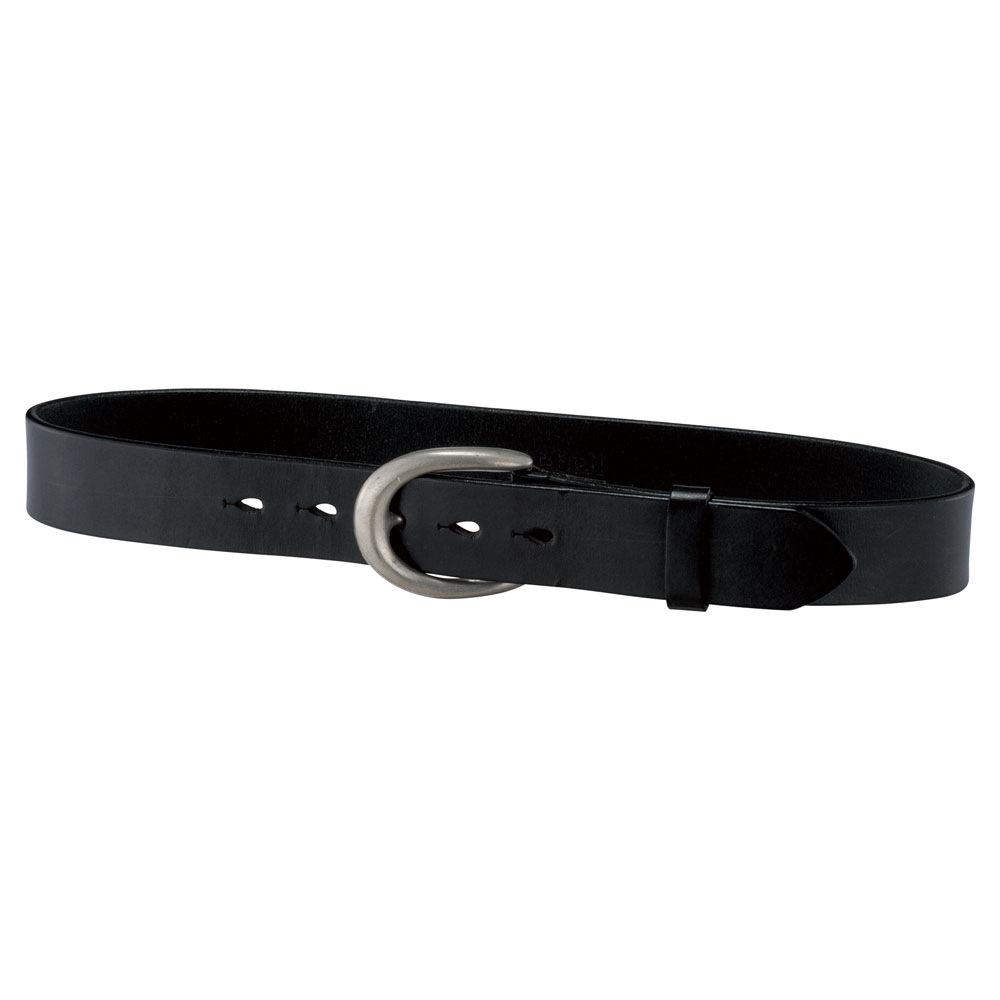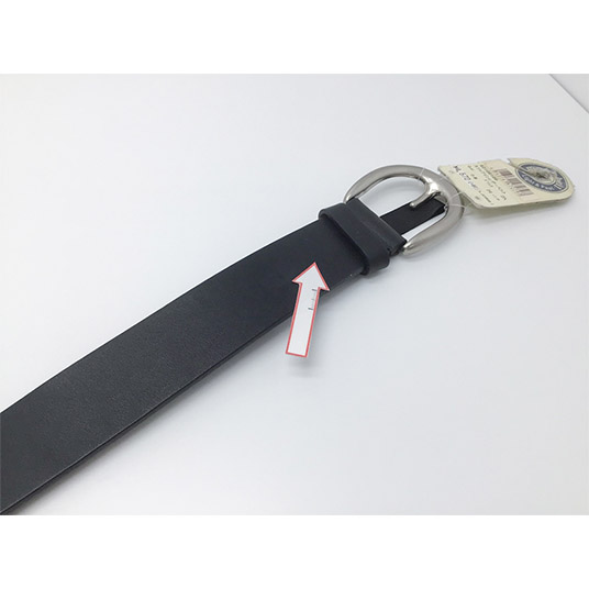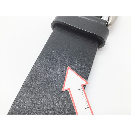留め具と一体型のバックルにベルトの先を通すだけで、比較的簡単に装着できます。ループが多少左右に動くので、ベルトを通しやすくなっています。幅35mm。