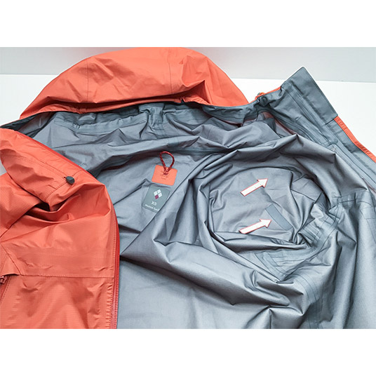 モンベルでは、レインウエアに求められる耐水圧20,000mm以上をクリアした素材のみを使用しています。