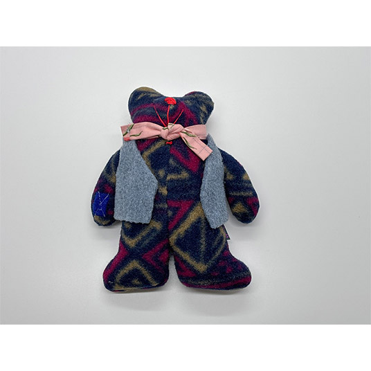 障害を持った人たちが仕事を通じて社会的に自立するため青葉仁会でモンベルのフリース製品の製造工程から出る端切れを100%再利用して製作している製品です。