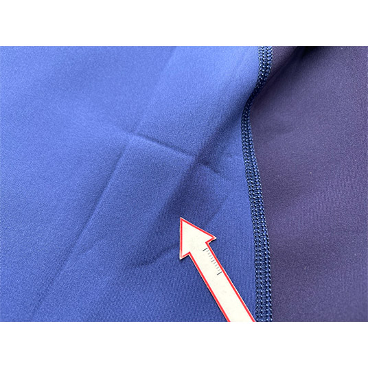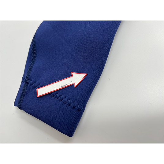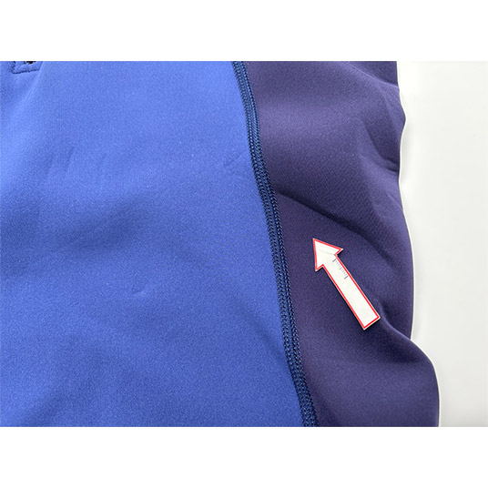 訳あり内容 ジッパー:上まであがらない(矢印部分まで) / 全体:しわ / 右手首:毛羽立ち
