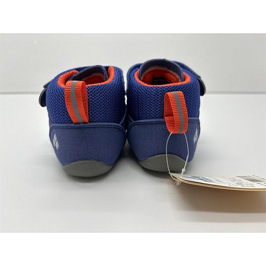 足あたりが柔らかく、蒸れにくい素材を使用した赤ちゃん用のブーツです。足首まで包み込むデザインで脱げにくく、歩行をしっかりサポートします。履き口が広がり、操作が簡単なベルクロ留めで、脱ぎ履きさせやすくなっています。 ※防水性はありません。