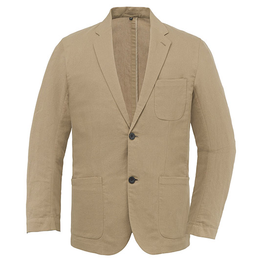 清涼素材・紙糸プラス®で仕立てた、スタンダードな2つボタンのジャケット。涼しく軽やかな着心地です。裏地、肩パッドのないデザイン。旅行に便利な収納ケースが付属します。