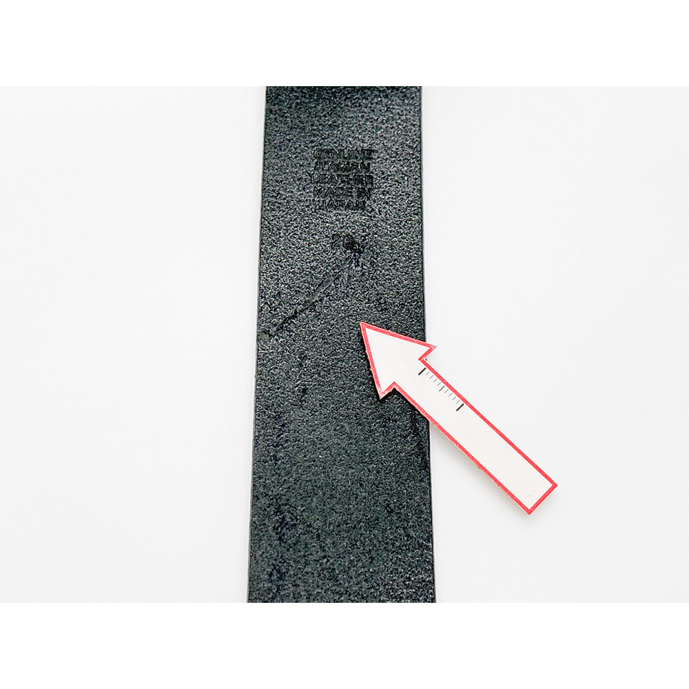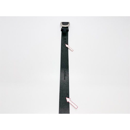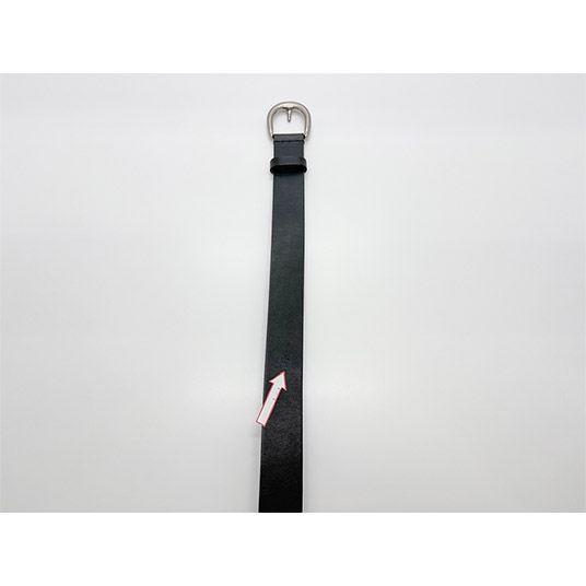 留め具と一体型のバックルにベルトの先を通すだけで、比較的簡単に装着できます。ループが多少左右に動くので、ベルトを通しやすくなっています。幅35mm。