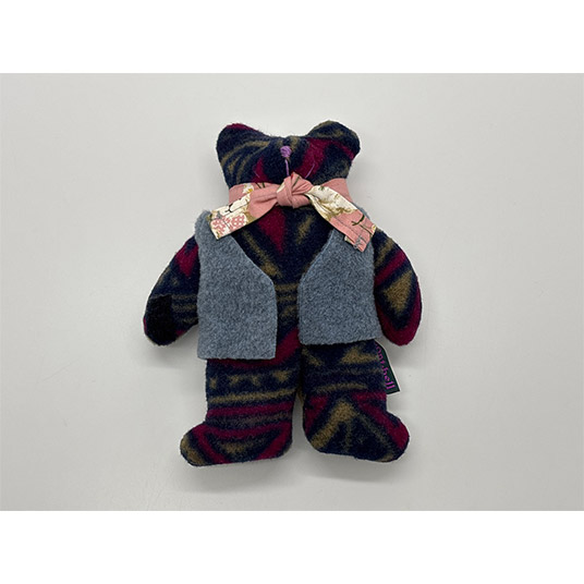 障害を持った人たちが仕事を通じて社会的に自立するため青葉仁会でモンベルのフリース製品の製造工程から出る端切れを100%再利用して製作している製品です。