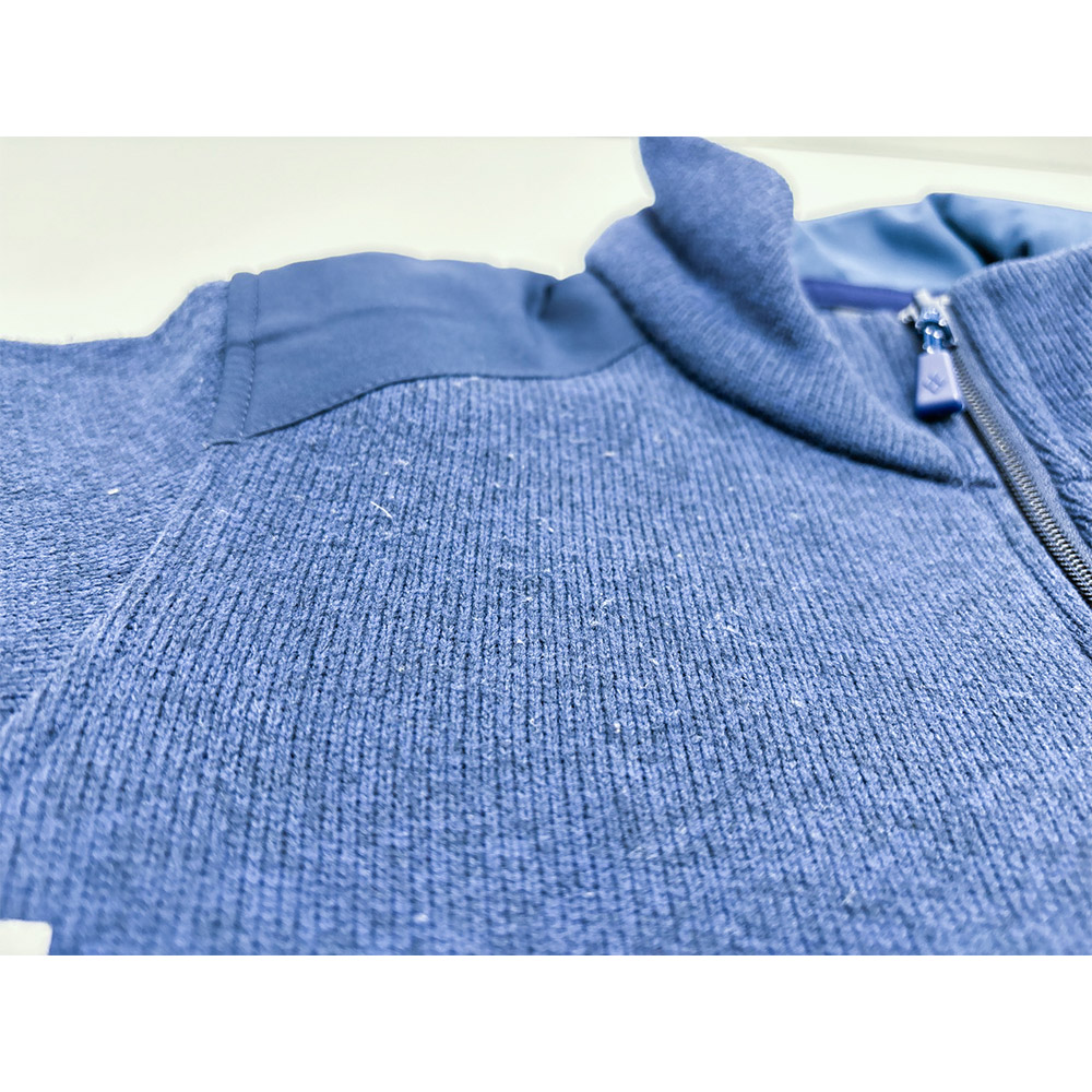 セーター調の上質な風合いを持つフリース素材を使用したジャケットです。軽量ながらも暖かく、裏面は柔らかな起毛地です。アウターや中間着として着用でき、トレッキングから旅行、タウンユースまで幅広い用途・場面で活躍します。擦れやすい肩・ひじには、耐久性を高める当て布付きです。