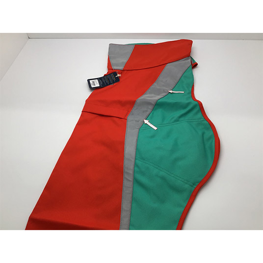 暗い場所や時間帯でも視認性を高める反射素材を備えたジャケットです。どの方向から光が当たっても目立つようになっています。はっ水性と耐摩耗性に優れた生地を使用しており、普段の散歩で活躍します。リーシュの通し口と、ビーコンを取り付けるためのループ付き。